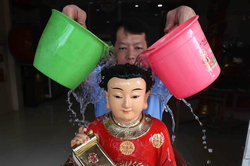 Pengurus rumah ibadah membersihkan patung dewa dewi di Vihara Dharma Bhakti, Banda Aceh, Aceh, Jumat (24/1/2025). Pembersihan patung dewa dewi, altar dan seluruh ruangan rumah ibadah oleh pengurus vihara Berbarengan Kaum keturunan Tionghoa itu dilaksanakan dalam rangka persiapan menyambut Tahun Baru Imlek 2576 Kongzili yang Anjlok pada 29 Januari mendatang. ANTARA/Irwansyah Putra/rwa/rdi