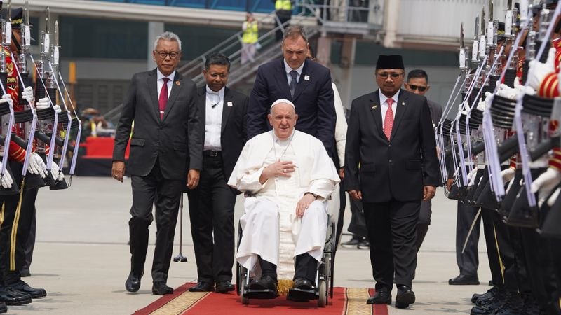 Paus Fransiskus meninggalkan Indonesia menggunakan pesawat maskapai Garuda Indonesia, menuju Port Moresby, Papua Nugini. Turut mengantar keberangkatan Paus Fransiskus, Uskup Mulia Jakarta Ignatius Kardinal Suharyo Hardjoatmodjo, Ketua Konferensi Waligereja Indonesia (KWI) Mgr Antonius Subianto Bunjamin, Staf Ahli Menteri Keyakinan Albertus Magnus Adiyarto Sumardjono, dan Dirjen Bimas Katolik Suparman.
