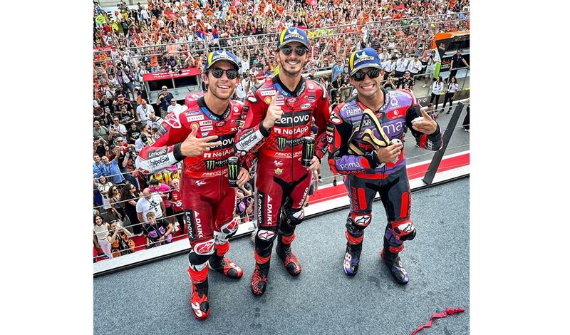 Kemenangan itu sekaligus menyempurnakan akhir pekan Bagnaia di Austria, setelah sehari sebelumnya mengklaim podium tertinggi di ajang sesi Sprint Race.