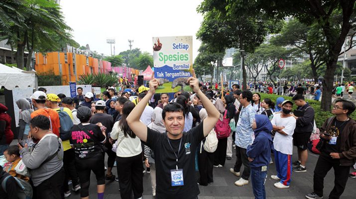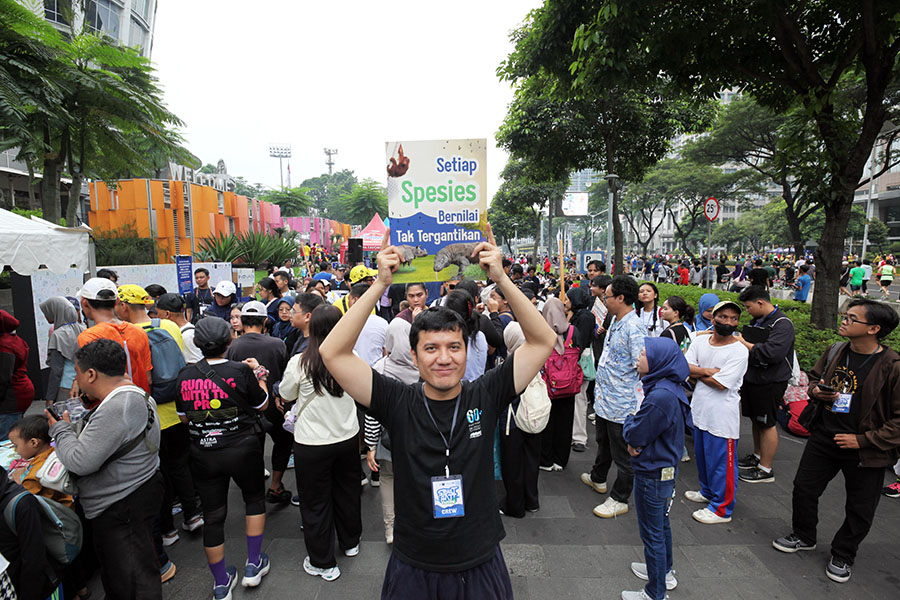Relawan melakukan sosialisasi kepada masyarakat Ketika car free day di kawasan Senayan, Jakarta, Minggu (1/6/2025). Komunitas dan relawan anak muda Earth Hour menggelar aksi melalui seni dengan mengajak serta anak-anak dan keluarga Kepada memberikan pemahaman akan Definisi Krusial kelestarian lingkungan serta keberlanjutan Tumbuhan dan Hewan. MI/Susanto/gus