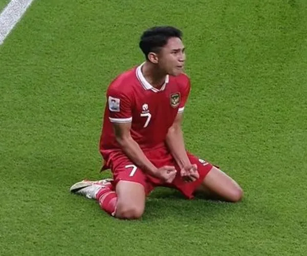 Liputanindo.id – Penyerang sayap Timnas Indonesia, Marselino Ferdinan sukses menyamakan kedudukan 1-1 kontra Irak, dalam laga perdana Grup D Piala Asia 2023 Qatar, Senin (15/1/2024) malam. (Istimewa)