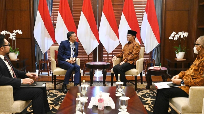 Menlu Sugiono Bersua dengan Dubes Malaysia Kepada Indonesia Dato’ Syed Mohamad Hasrin Tengku Hussin. Foto: Kemenlu RI
