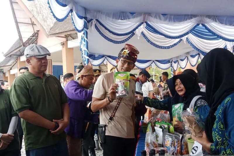 Menparekraf Sandiaga Salahuddin Uno saat berkunjung ke Desa Wisata Keciput sebagai Desa Wisata yang masuk dalam nominasi 50 Desa Wisata terbaik di Indonesia, di Tanjungpandan, Babel, Kamis (5/9/2024).(ANTARA)
