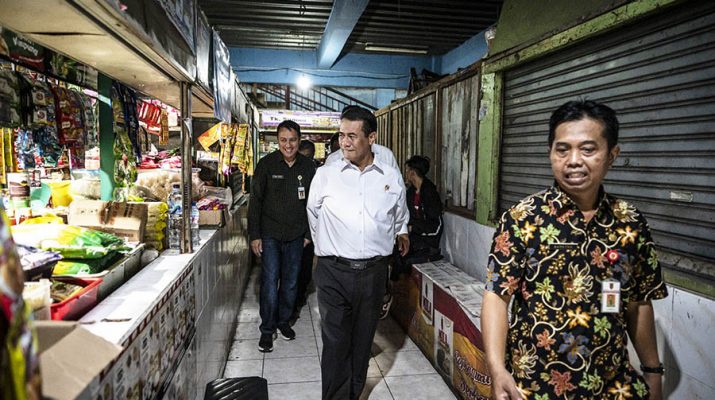 Menteri Pertanian Andi Amran Sulaiman (tengah) meninjau Pasar Bulu di Semarang, Jawa Tengah, Sabtu (23/8/2025). Peninjauan tersebut bertujuan Buat memastikan ketersediaan dan stabilitas harga beras di Kota Semarang, sehingga kebutuhan masyarakat dapat terpenuhi dengan Bagus. ANTARA/Aprillio Akbar/gus