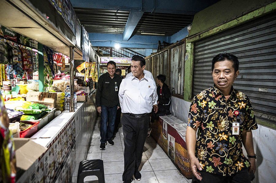 Menteri Pertanian Andi Amran Sulaiman (tengah) meninjau Pasar Bulu di Semarang, Jawa Tengah, Sabtu (23/8/2025). Peninjauan tersebut bertujuan Buat memastikan ketersediaan dan stabilitas harga beras di Kota Semarang, sehingga kebutuhan masyarakat dapat terpenuhi dengan Bagus. ANTARA/Aprillio Akbar/gus