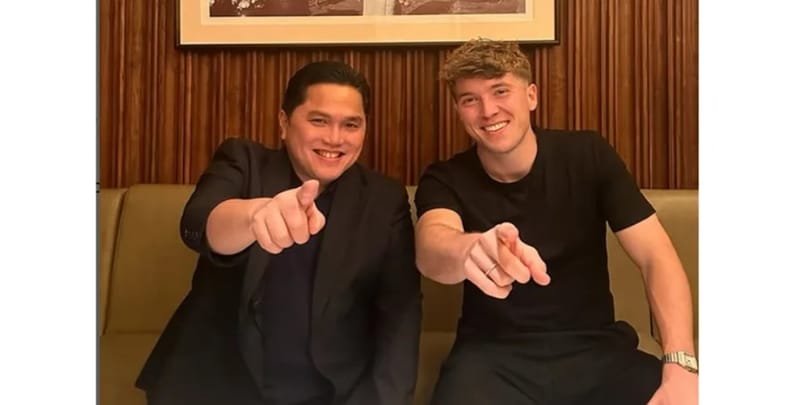Calon pemain naturalisasi Indonesia Ole Romeny (kanan) Serempak Ketua Lazim PSSI Erick Thohir.(Instagram @erickthohir)
