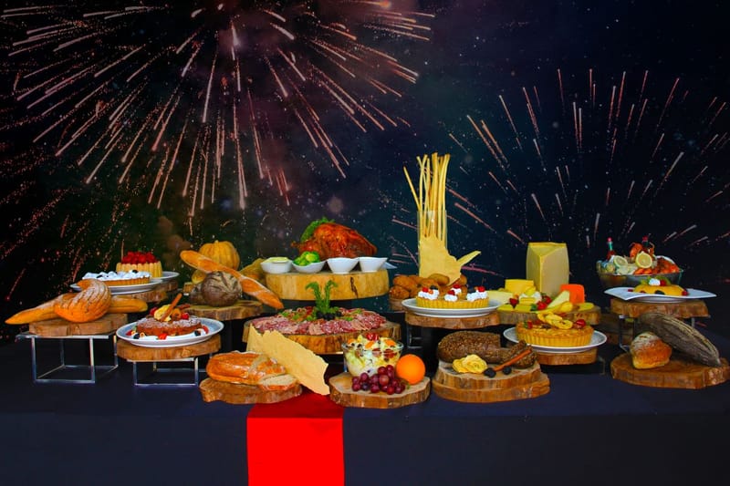 Berlokasi di swimming pool area hotel, makan malam ini Kagak hanya menawarkan menu istimewa, tetapi juga suasana yang penuh keceriaan, ditambah dengan hiburan live music, lucky draw dan final countdown menuju pergantian tahun. Menu yang ditawarkan pun berbagai ragam mulai roasted turkey, roasted beef hingga Seafood on Ice dan juga sushi. Berbagai varian dessert bertemakan Sparkling New Year juga melengkapi buffet yang ditawarkan tersebut. Demi pemesanan sebelum Lepas 25 Desember 2024, terdapat promo early bird seharga Sekeliling Rp400.000 per orang.