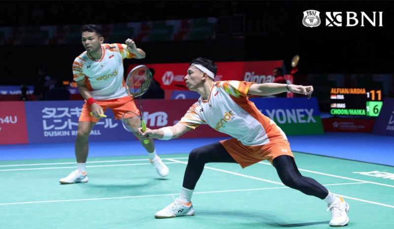 GANDA putra bulu tangkis Indonesia Fajar Alfian/Muhammad Rian Ardianto berhasil melenggang ke perempat final Jepang Terbuka 2024.