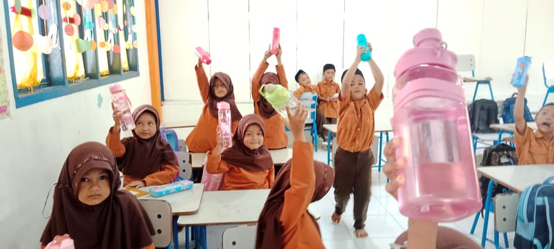 SETELAH Bell tanda waktu istirahat berakhir Sekeliling pukul 10.30 Wib, anak-anak MIN (Madarasah Ibtidaiyah Negeri) 44, Kabupaten Pidie, Provinsi Aceh itu kembali masuk kelas masing-masing. Begitu duduk di bangku belajar, mata dan tangan mereka tertuju pada botol air.