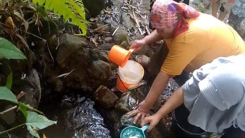 “Masyarakat setiap pagi, sore memanfaatkan air Sungai Jayanti dan mereka semua harus berjalan kaki sejauh 2 kilometer melalui lahan pertanian menyusuri perbukitan naik dan turun ke aliran sungai dengan membawa ember dan galon termasuk pakaian kotor. Karena, pada musim kemarau yang terjadi sekarang masih ada sisa air meski kondisi menyusut drastis,” katanya.