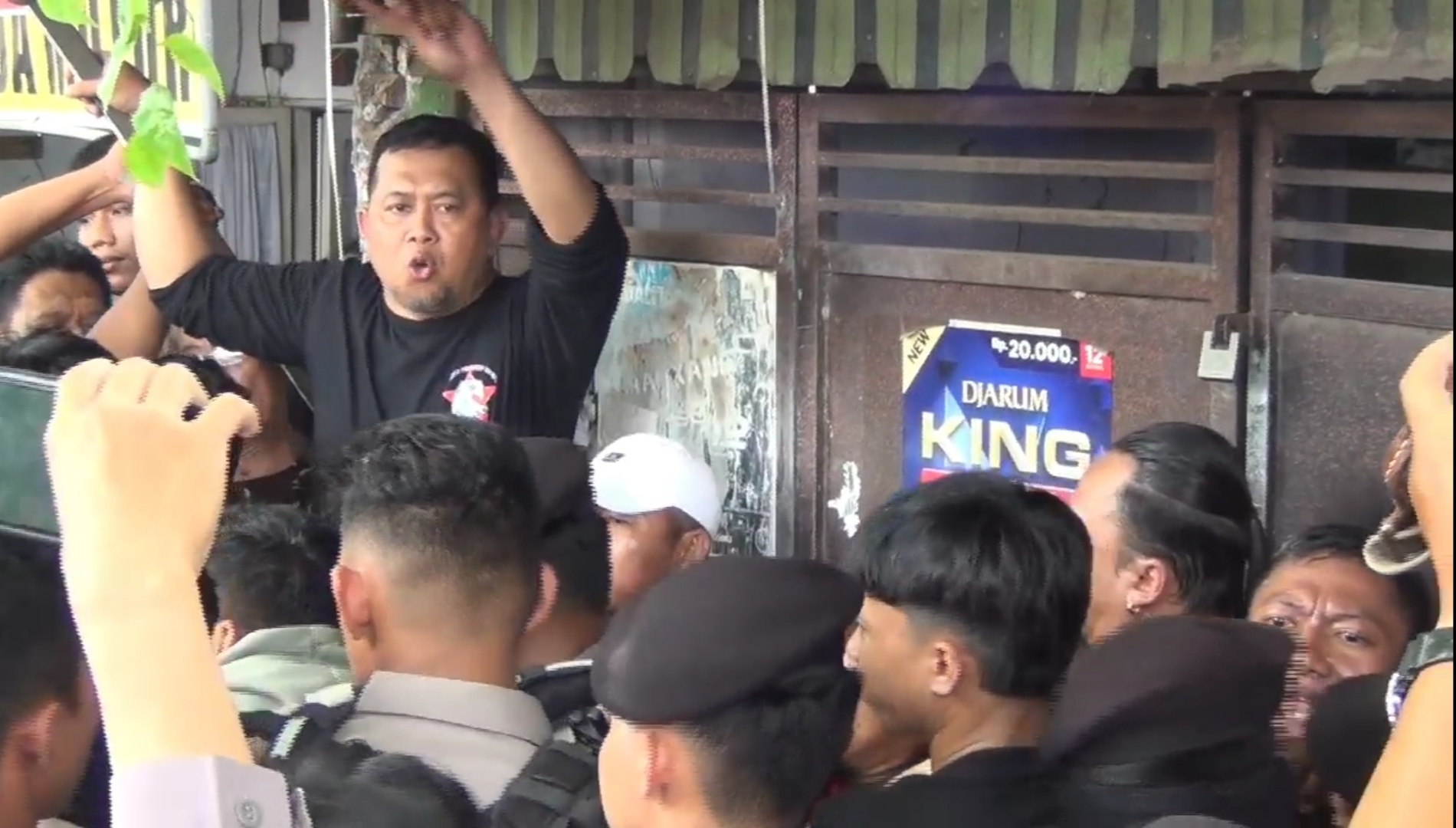 Penghuni yang di-backup LSM pun terlibat aksi dorong, dengan petugas juru sita yang dibackup polisi dan TNI. Satu Penduduk penghuni diamankan polisi karena berusaha melawan.