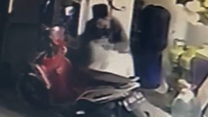 Pelaku mencoba Memajukan karung tersebut ke atas motornya. FA Lampau sempat berbincang dengan pria lain di depan warung.