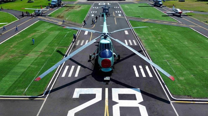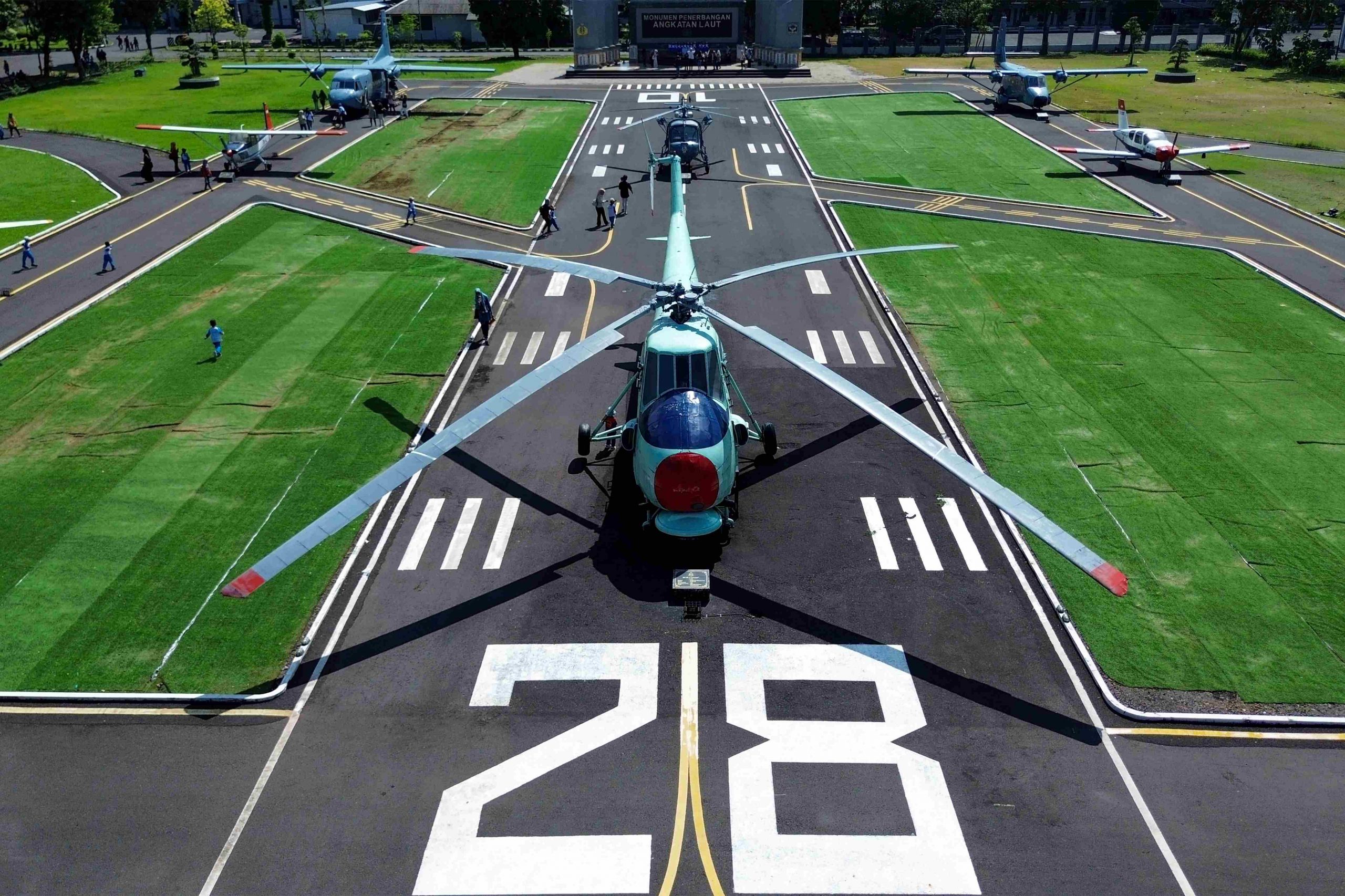 Foto udara sejumlah pengunjung Memperhatikan pesawat di Monumen Penerbangan Angkatan Laut di Puspenerbal Sidoarjo, Jawa Timur, Rabu (4/6/2025). Monumen yang berisi 8 pesawat yang pernah digunakan dalam berbagai operasi oleh Puspenerbal tersebut menjadi tempat sarana edukasi dan memberikan wawasan yang lebih luas bagi masyarakat tentang sejarah penerbangan TNI AL. ANTARA FOTO/Umarul Faruq/Ppj