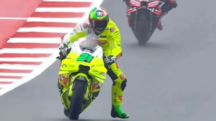 liputanindo.com – Sesi pertama race weekend MotoGP Austin USA 2025 hadir dalam keadaan Trek Hujan dan basah di 45 menit FP1 dengan temperatur trek 21°C. Di awal awal sesi Marc Marquez sempat memimpin Serempak Morbidelli Tetapi ia Crash di T2 pada menit ke 14 . . setelah tu Tamat menit ke 30 Pecco bagnaia terlihat Memimpin dengan 2:15,490 diikuti Quartararo dan Vinales.