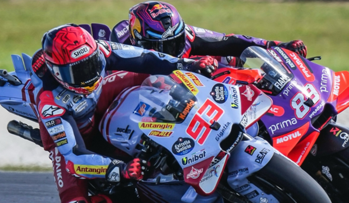 MARC Marquez (Gresini) mencetak kemenangan ketiga musim ini usai meredam Jorge Martin pada MotoGP Australia, Minggu (20/10). Sirkuit Phillip Island menjadi saksi pertarungan ketat antara Marquez dan Jorge Martin (Pramac).
