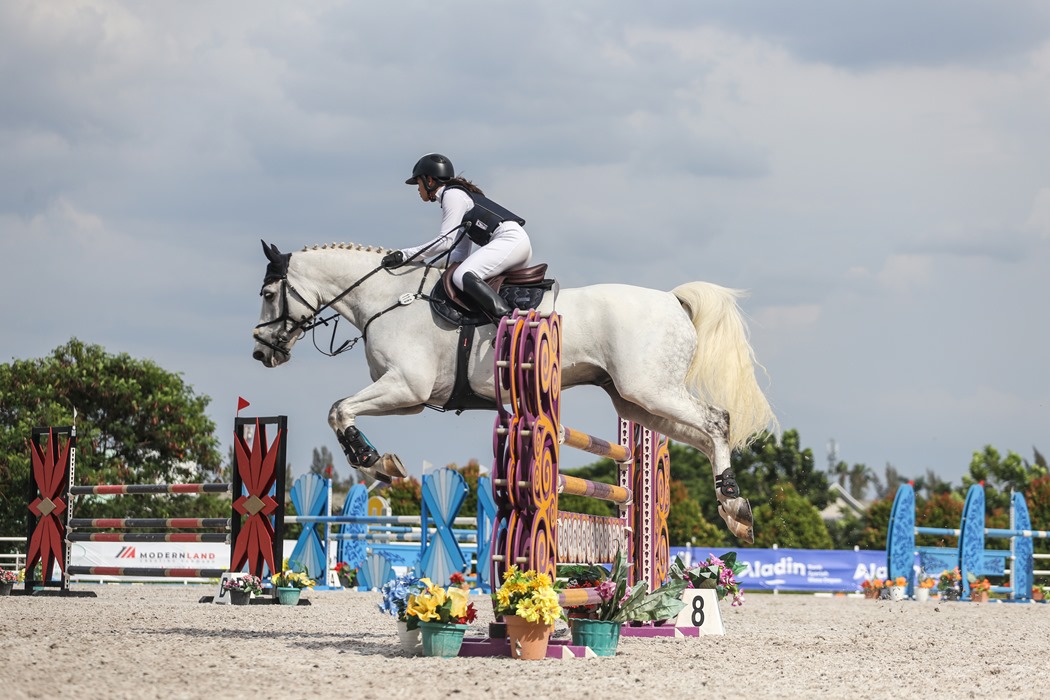 Peserta melakukan aksi melompat palang rintang pada Indonesian Horse Lovers Festival di Equinara Horse Sports, Pulomas , Jakarta, Minggu (23/10/2022).(ANTARA/ASPRILLA DWI ADHA)