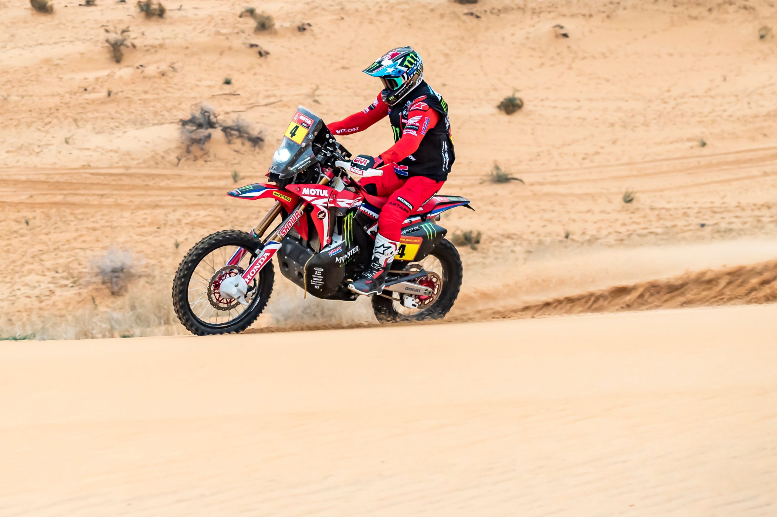 liputanindo.com – Setelah memenangkan Stage Ke 7, Juara Dakar rally kelas sepedamotor tahun 2020 yang Lewat, Ricky Brabec Start dari posisi pertama pada Stage ke8 Dakar Rally 2021 yang menempuh 709 km termasuk 375 km special stage antara Sakaka ke Naom Saudi Arabia. Joan Barreda yang kemarin mengalami kerusakan ban, naik ke posisi kedua di check point pertama, Pas 12 detik di belakang Toby Price (KTM). Pembalap Spanyol itu telah berada depan dua rekan setimnya di Honda