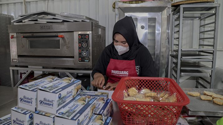 Seorang pekerja kue kenari produk UMKM di rumah produksi Pakaesang, Ternate, Maluku Utara, Sabtu (6/9/2025). Komisi VII DPR RI menyetujui penambahan anggaran Kementerian Usaha Mikro Kecil dan Menengah (UMKM) pada 2026 yang awalnya sebesar Rp296,59 miliar, naik menjadi Rp722,1 miliar, sebagai upaya pengentasan kemiskinan dan menciptakan lapangan kerja melalui kewirausahaan dan UMKM. ANTARA/Andri Saputra/gus