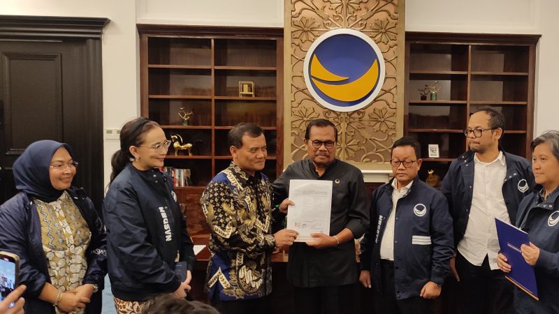 Sejumlah jajaran pengurus DPP NasDem ikut hadir Ketika penyerahkan rekomendasi dukungan itu. Antara lain Lestari Moerdijat, Sugeng Suparwoto, dan Amelia Anggraini.