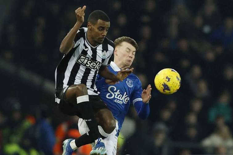 Arsip – Pemain Newcastle United Alexander Isak (kiri) dalam pertandingan sepak bola Aliansi Inggris di Goodison Park, Liverpool, Inggris, Jumat (8/12/2023). ANTARA FOTO/Reuters/Jason Cairnduff/nym.