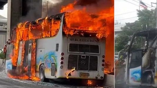 Menteri Transportasi Thailand, Suriya Juangroongruangkit, mengatakan bus itu terbakar Sekeliling pukul 12.30 siang, Selasa (1/10). Kebakaran itu terjadi di dekat pusat perbelanjaan Zeer Rangsit, Bukan jauh dari Bandara Don Muang Bangkok.