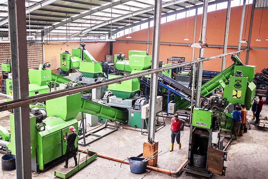 Pekerja mengolah sampah menggunakan mesin di Tempat Pengolahan Sampah Terpadu (TPST) Santiong, Kota Cimahi, Jawa Barat, Senin (8/9/2025). TPST yang dalam sehari Pandai mengolah puluhan ton sampah menjadi bahan bakar alternatif atau refuse derived fuel (RDF) Demi kebutuhan industri tersebut menjadi salah satu Teladan implementasi pengelolaan sampah berbasis ekonomi sirkular di Jawa Barat. ANTARA/Abdan Syakura/gus