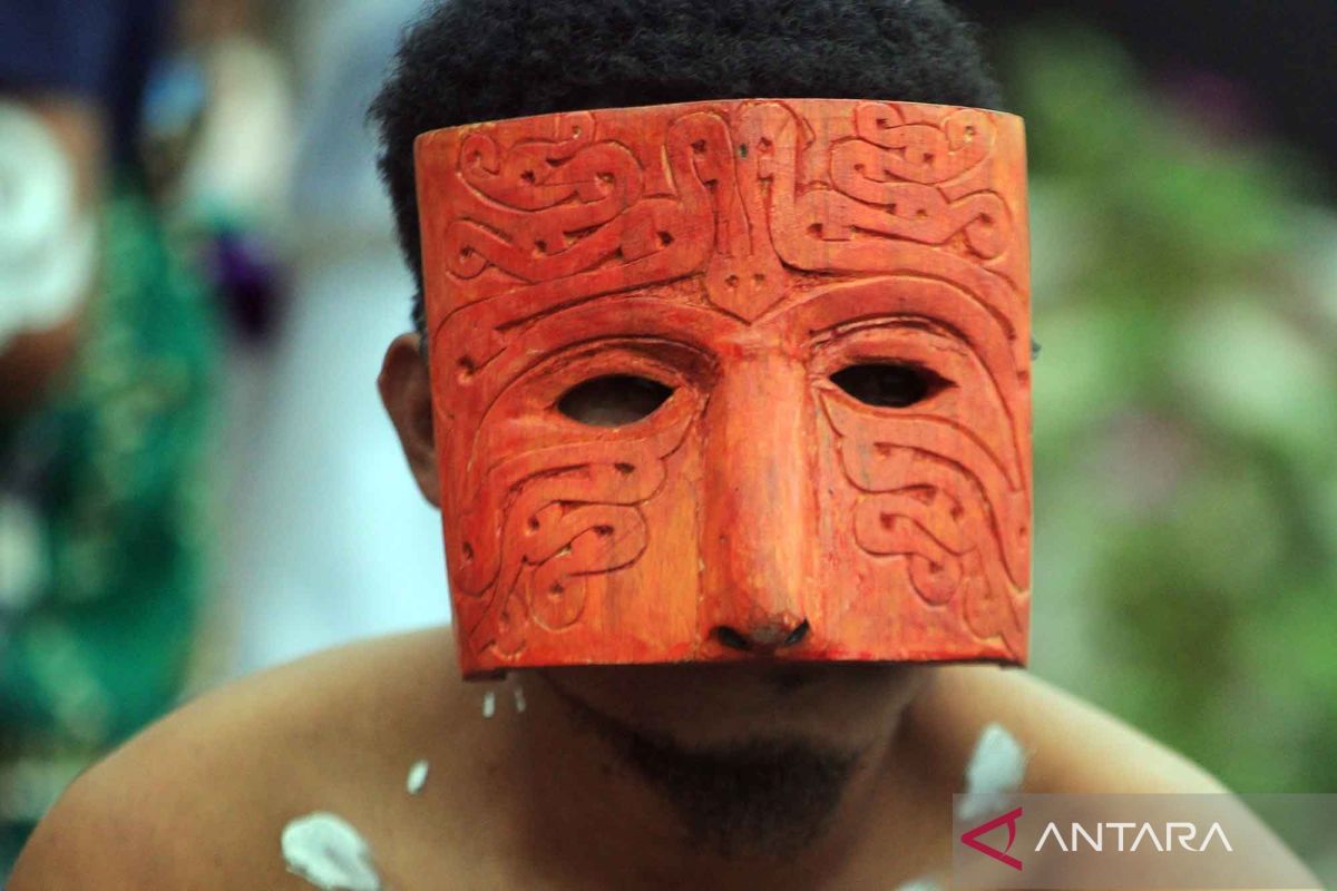 Seorang Penduduk mengenakan topeng khas Papua pada Festival Kampung Nelayan Hamadi di Jayapura, Papua, Jumat (5/7/2024). Festival yang diselenggarakan Dinas Pariwisata Kota Jayapura tersebut Kepada memperkenalkan destinasi wisata baru dan sebagai upaya mendukung perkembangan UMKM di Area itu. ANTARA FOTO/Gusti Tanati/nym.