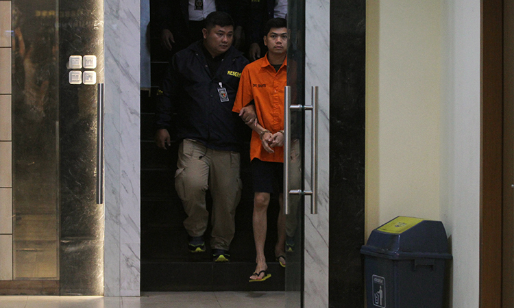 Liputanindo.id JAKARTA – Kabid Humas Polda Metro Jaya Kombes Pol Ade Ary Syam Indradi (kanan) bersama Direskrimum Kombes Pol Wira Satya (kiri) menyampaikan keterangan saat rilis kasus pembunuhan Dante (6) anak dari artis Tamara Tyasmara di Polda Metro Jaya, Jakarta, Senin, (12/2/2024). Dalam rilis Yudha terbukti bersalah karena telah menenggelamkan Dante sebanyqak 12 kali di kolam renang kawasan Duren Sawit, Jakarta Timur, barring bukti yang dihadirkan berupa sandal milk Dante, pakaian renang hingga rekaman CCTV. (Liputanindo.id – MUNZIR)