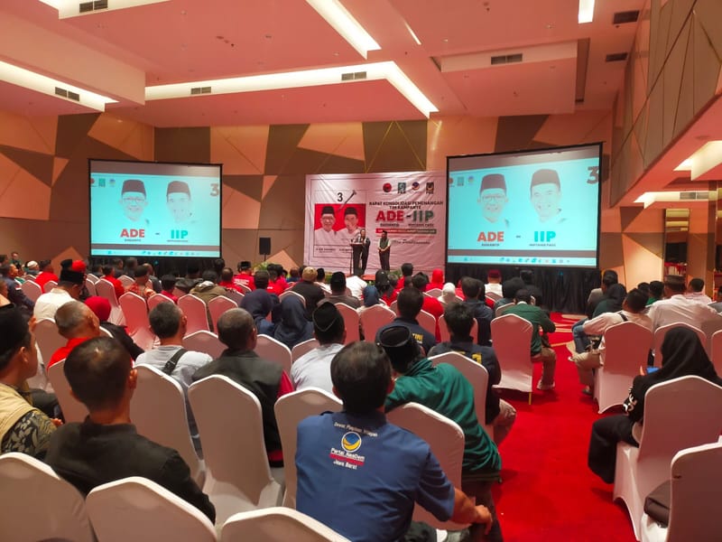 “Kami akan mengoptimalkan langkah Segala partai pengusung dalam pemenangan menjelang hari pemilihan nanti. Segala harus bergerak turun ke lapangan agar masyarakat mengetahui visi dan misi paslon nomer urut 3. Kekasih Ade-Iip akan melanjutkan pembangunan terutama sarana, prasaran, pendidikan, kesehatan, infrastruktur jalan, meningkatkan potensi wisata, budaya, perekonomian, dan kesejahteraan masyarakat,” paparnya.