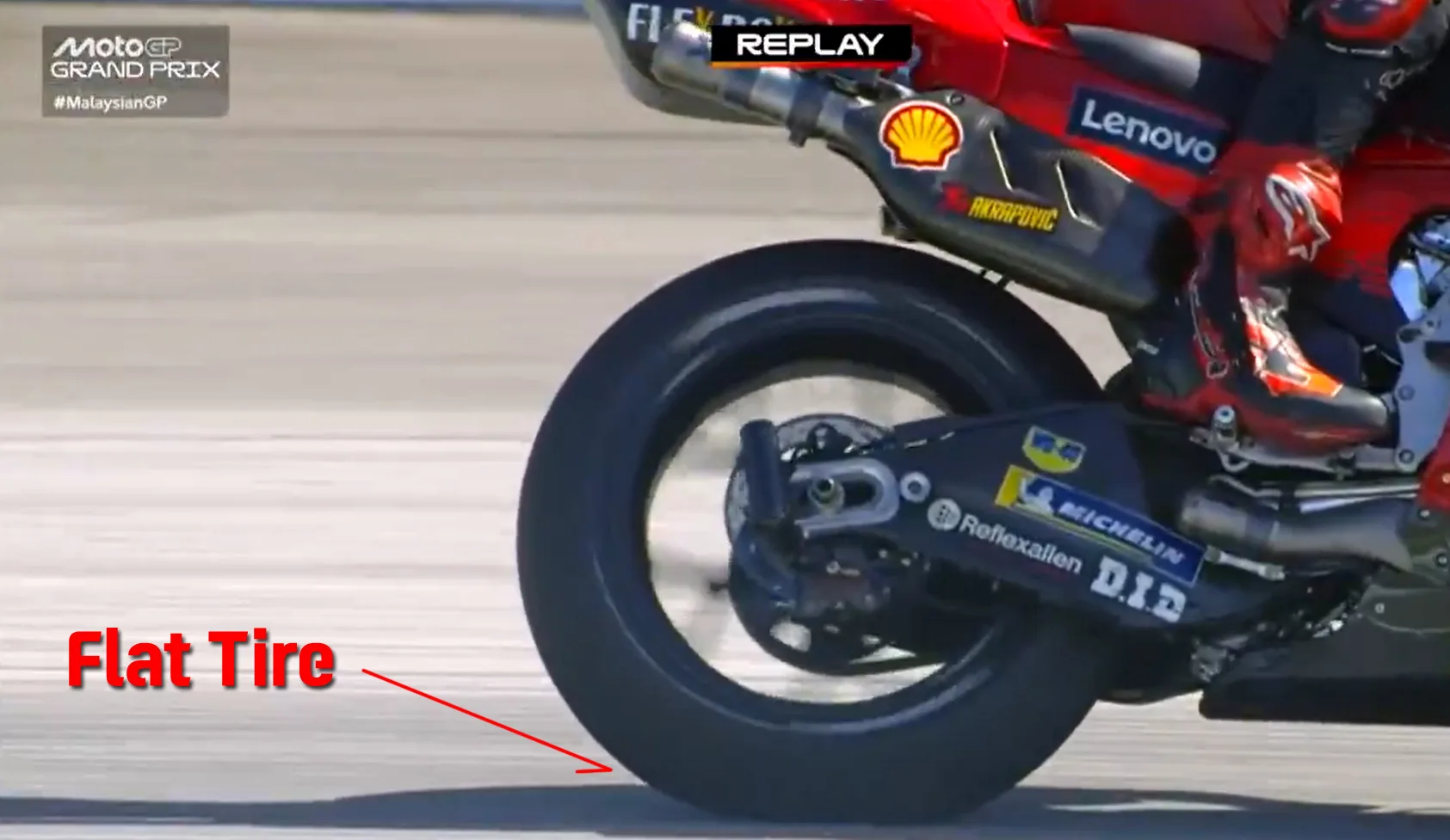 liputanindo.com – Seperti Kita ketahui Pecco Bagnaia menyelesaikan Balapan lebih awal – Lebih tepatnya di Lap ke-18 dari total 20 Lap – Pada race Esensial MotoGP Malaysia 2025. Ban Belakang Softnya diketahui Bocor seperti yang sudah dikonfirmasi Oleh Michelin “Kami mendeteksi adanya lubang di tengah ban belakang,” ujar bos Michelin, Piero Taramasso, kepada media Italia.
