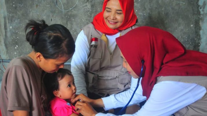 Petugas memeriksa kesehatan anak balita di posko pengungsian korban banjir, Desa Pasuruan Lor, Jati, Sakral, Jawa Tengah, Sabtu (25/1/2025). Pemeriksaan secara rutin tersebut Kepada memastikan kesehatan para pengungsi korban banjir agar terhindar dari berbagai penyakit. ANTARA FOTO/Yusuf Nugroho/Per