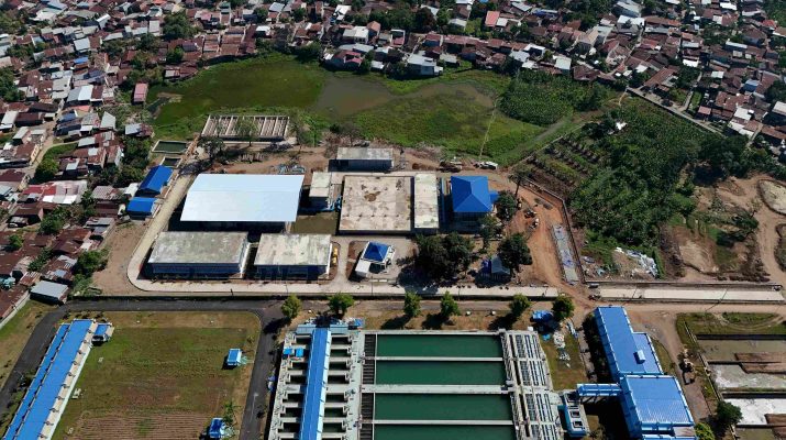 Foto udara pembangunan Sistem Penyediaan Air Minum (SPAM) Regional Mamminasata, Kabupaten Gowa, Sulawesi Selatan, Senin (18/8/2025). Proyek strategis nasional tersebut dirancang Kepada memperkuat layanan air Rapi di Kawasan Makassar, Maros, Gowa, dan Takalar dengan kapasitas produksi 1.000 liter per detik yang bersumber dari Bendungan Bili-Bili serta ditargetkan Pandai melayani hingga 80 ribu sambungan rumah (SR) atau setara 400 ribu jiwa. ANTARA FOTO/Hasrul Said/Ppj