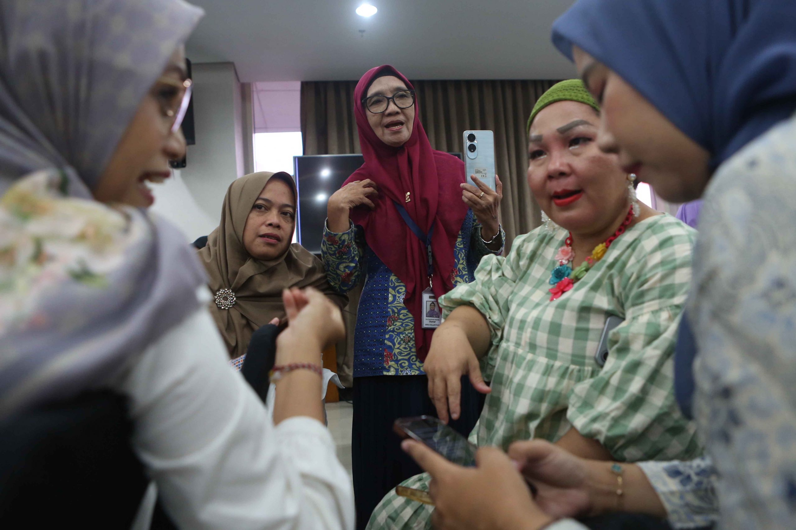 Peserta program Emak-emak matic berdiskusi Golongan dan Membangun konten Ketika mengikuti pelatihan Membangun konten video di Jakarta Pusat, Selasa (16/9/2025). Kementerian Pemberdayaan Perempuan dan Perlindungan Anak (KemenPPPA) Berbarengan Kementerian Ekonomi Kreatif/Badan Ekonomi Kreatif (Kemenekraf), Tokopedia dan Tiktok shop memberdayakan Perempuan Indonesia melalui pembekalan keterampilan digital Demi memasarkan produk melalui konten video. MI/RAMDANI