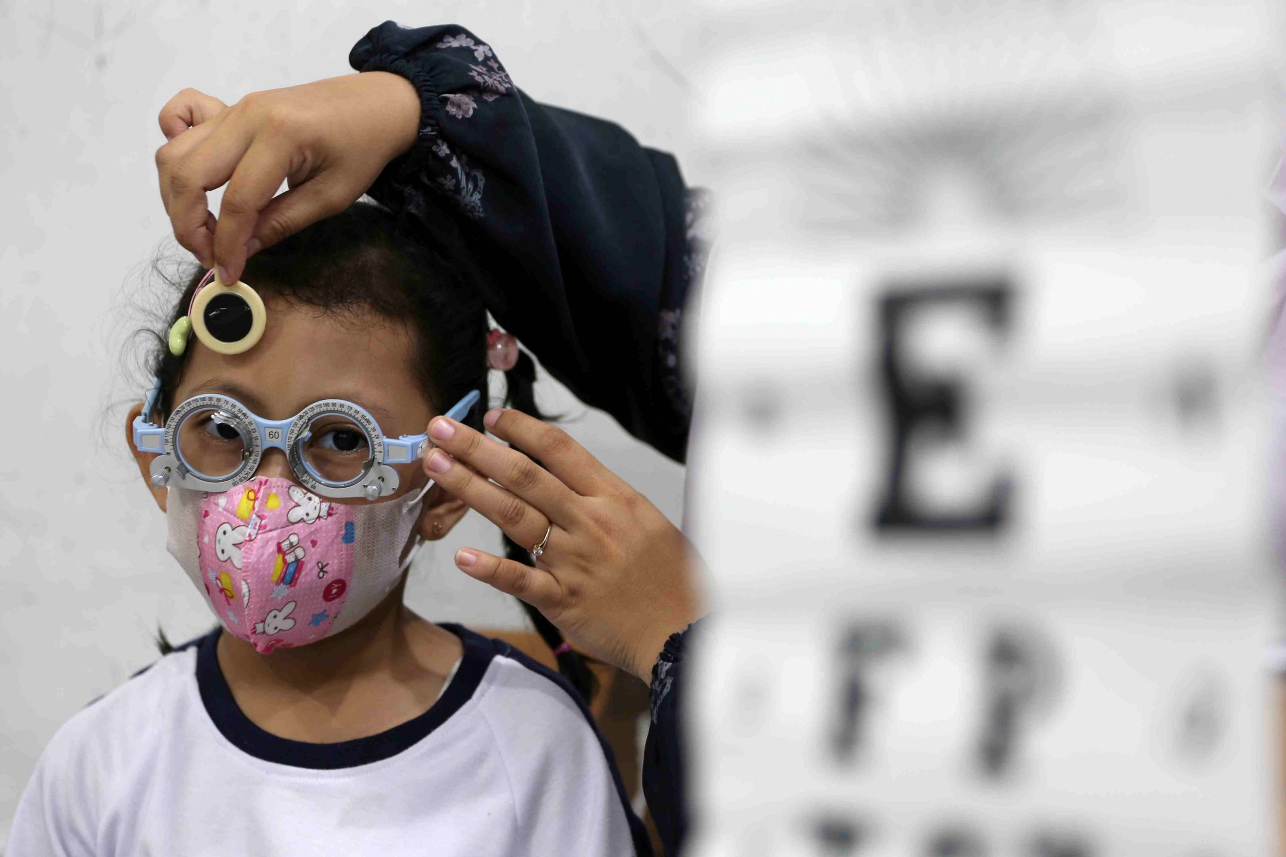 Dokter spesialis memeriksa mata pelajar sekolah dasar Methodist pada bakti sosial HUT Perhimpunan Dokter Spesialis Mata Indonesia (Perdami) di Banda Aceh, Aceh, Sabtu (2/8/2025). Perdami memperkirakan 10 persen dari 66 juta anak sekolah berusia antara lima hingga 19 tahun di seluruh Indonesia mengalami kelainan refraksi dan hanya sebagian kecil yang tertangani dengan penggunaan kacamata. ANTARA FOTO/Irwansyah Putra/Ppj