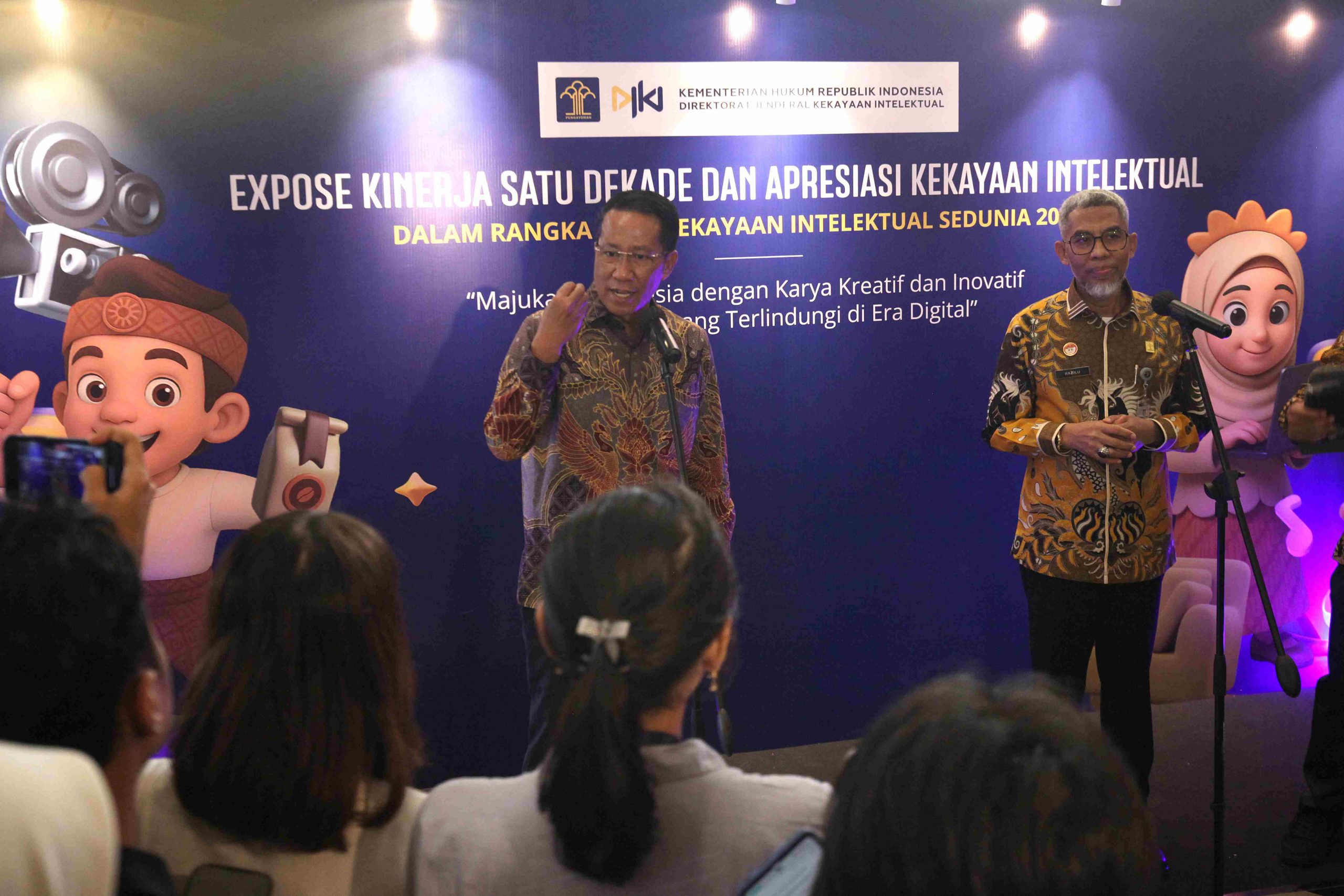 Menteri Hukum Supratman Andi Agtas (kiri) didampingi Dirjen Kekayaan Intelektual Razilu menyampaikan keterangan pers terkait proses ekstradisi buronan kasus korupsi pengadaan e-KTP Paulus Tannos di Gedung Graha Pengayoan Jakarta Rabu (4/6/2025). Supratman Andi Agtas menyatakan pemerintah telah berkomunikasi dengan otoritas Singapura mengenai proses ekstradisi buron kasus korupsi pengadaan e-KTP Tetapi proses pengadilan yang dijalani Paulus merupakan kewenangan otoritas setempat. MI/Susanto/Ppj