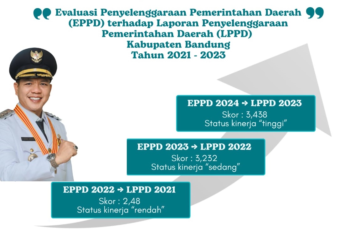 Hal ini terlihat dari hasil EPPD bahwa status kinerja Pemkab Bandung pada tahun 2022 hanya memperoleh predikat kinerja rendah dengan skor 2,48. Kemudian pada 2023, meningkat menjadi predikat kinerja sedang dengan skor 3,232.