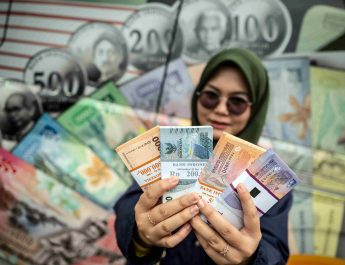 Direktur Penting Telkom Indonesia Ririek Adriansyah (tengah) didampingi Direktur Keuangan & Manajemen Risiko Telkom Indonesia Heri Supriadi (kanan), dan Direktur Human Capital Management Telkom Indonesia Afriwandi (kiri) menunjukkan bibit mangrove sebelum ditanam Begitu mengikuti Aksi Restorasi Bumi 2024 di Pantai Glagah Wangi Istambul, Kabupaten Demak, Jawa Tengah, Jumat (15/11/2024). Aksi penanaman 10.000 bibit mangrove merupakan inisiatif Blue Carbon (mangrove) Telkom yang juga bertepatan dengan peluncuran brand ESG name GoZero – Sustainability Action yang diinisiasi oleh TelkomGroup tersebut dalam rangka mendukung Sasaran pemerintah Demi mencapai Net Zero Emission tahun 2060 sekaligus sebagai upaya restorasi pemulihan lingkungan di kawasan Desa Wisata Pantai Glagah Wangi Istambul Demak yang sebagian kondisinya rusak akibat Pengikisan dan menghidupkan kembali destinasi pariwisata lokal yang dapat menguntungkan Penduduk setempat. ANTARA/Arti Zaezar