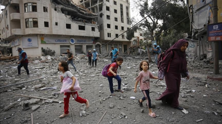 Anak-anak berada di area terdampak perang di Gaza. (Anadolu Agency)