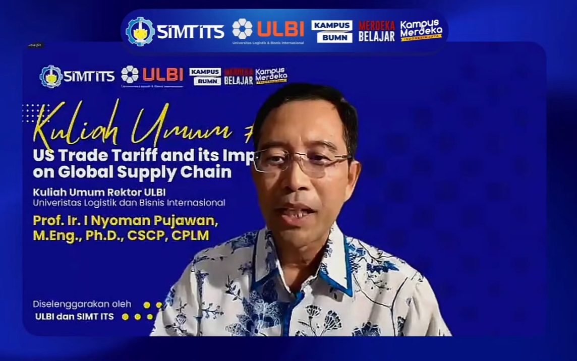 Hal ini disampaikan oleh Rektor Universitas Logistik dan Bisnis Global (ULBI), yang juga Guru Besar Institut Teknologi Sepuluh Nopember (ITS) Prof Dr Nyoman Pujawan, M.Eng., CSCP, dalam kuliah Lumrah virtual bertajuk “US Trade Tariff and Its Implications on Mendunia Supply Chain”.