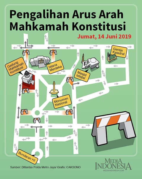 Ditlantas Polda Metro Jaya akan melakukan pengalihan arus Lampau lintas di area Sekeliling gedung Mahkamah Konstitusi (MK), Ketika sidang Perselisihan Hasil Pemilihan Lazim (PHPU) Pemilu 2019.