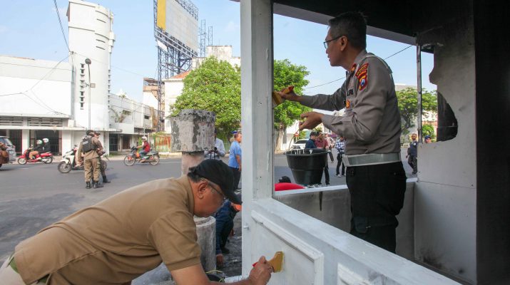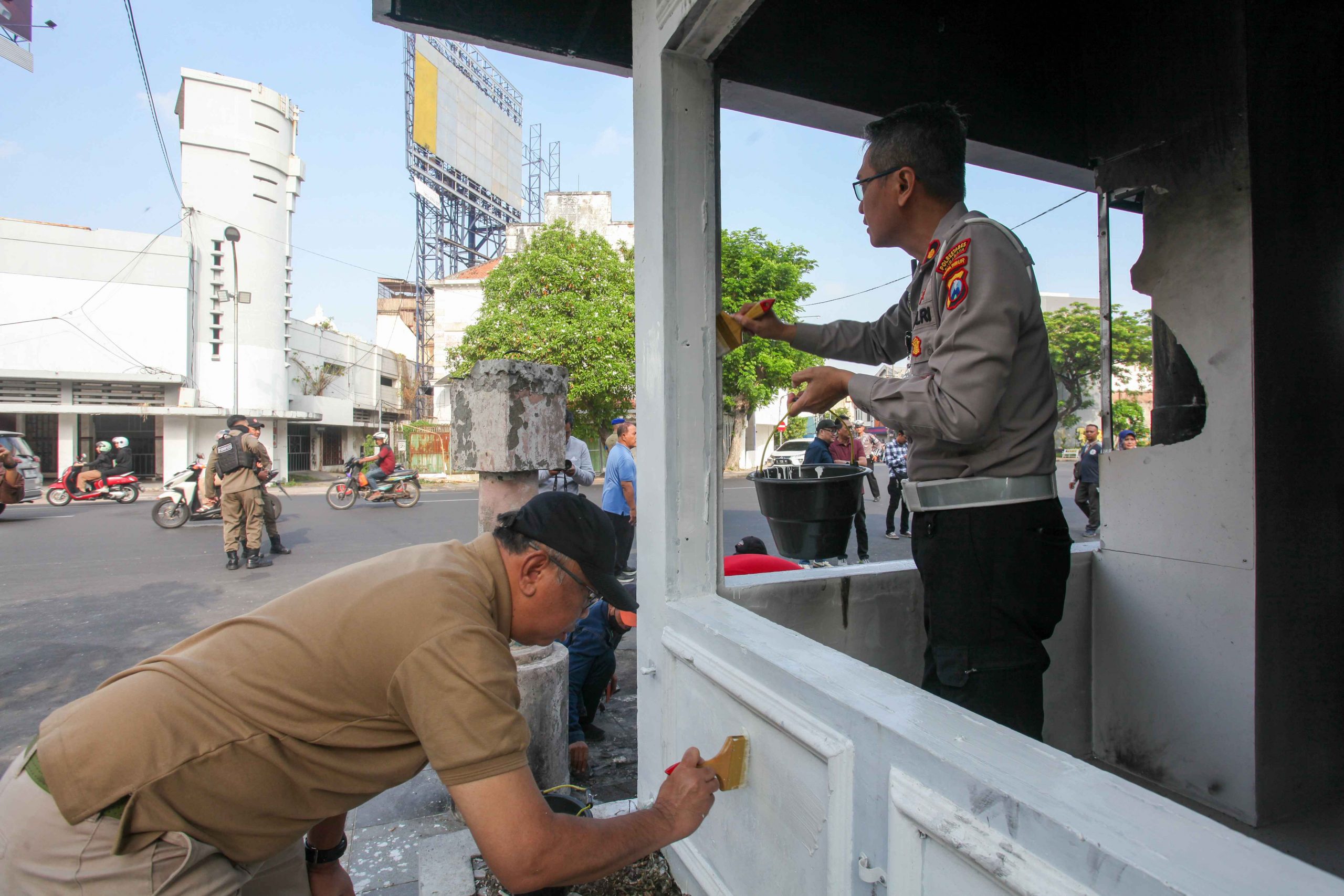 Pengecatan Pos Polisi Pascakerusuhan di Surabaya