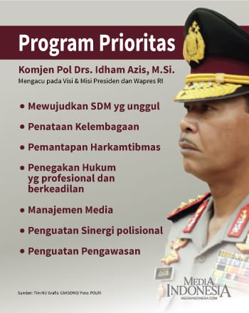 Infografis 19/11/2024 Penguatan Polri Yang Promoter Menuju Indonesia Maju Diposkan Oleh:administrator infografis(Sumber: Tim MI/ Grafis: CAKSONO/ Foto: POLRI) Disampaikan oleh Komjen Pol Drs. Idham Azis, M.Si. Pada Uji Kelayakan dan Kepatutan Calon Kapolri di hadapan Komisi III DPR RI Cek Artikel: Terjamin dan Nyaman dengan Liburan di Rumah Saja