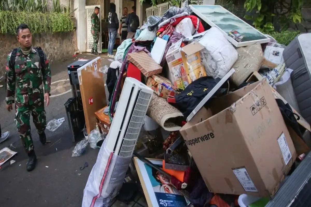 Liputanindo.id – Personel TNI berjaga di rumah Menteri Keuangan Sri Mulyani yang berantakan usai didatangi massa Enggak dikenal di Bintaro, Tangerang Selatan, Banten, Minggu (31/8/2025). ANTARA FOTO/Muhammad Iqbal