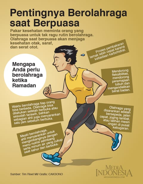 Infografis 29/11/2024 Pentingnya Berolahraga Demi Berpuasa Diposkan Oleh:administrator infografis(caksono) Ahli kesehatan meminta orang yang berpuasa Buat tak ragu rutin berolahraga. Olahraga Demi berpuasa akan menjaga kesehatan otak, saraf, dan serat otot. Baca juga: Agar Tetap Fit di Bulan Puasa Cek Artikel: Data Penyandang Gangguan Kejiwaan di Indonesia