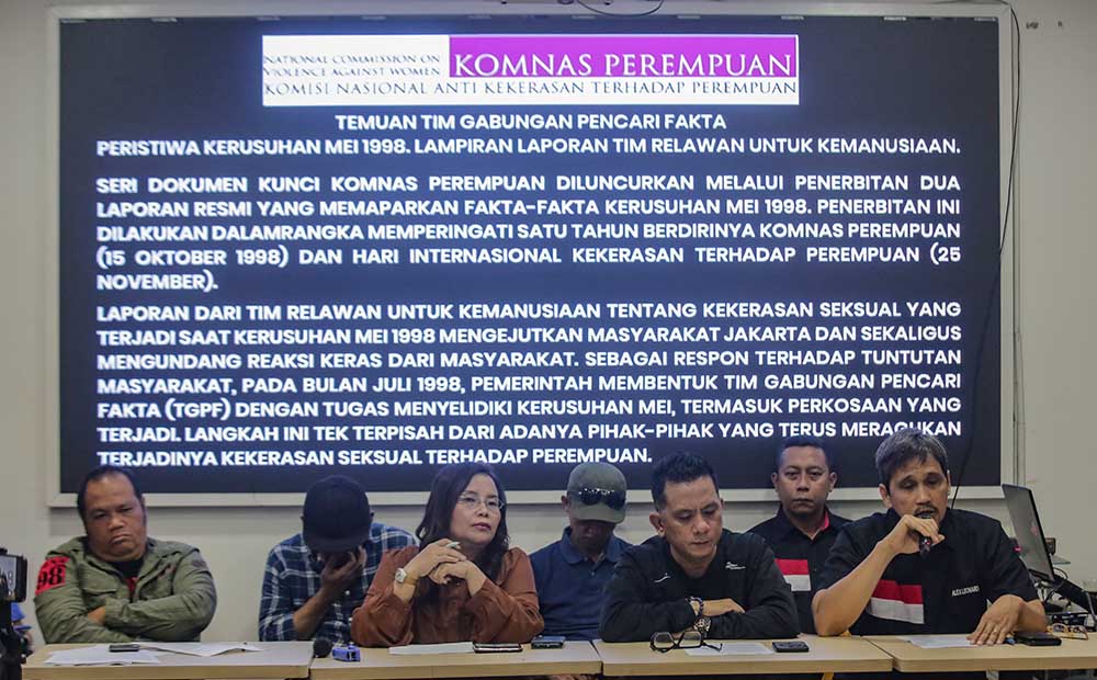 Para aktivis yang tergabung dalam Aliansi Organ 98 menggelar konferensi pers terkait penulisan ulang sejarah Indonesia di Jakarta, Rabu (18/6/2025). Dalam keterangannya Aliansi Organ 98 menolak penulisan ulang sejarah nasional yang tengah digarap Kementerian Kebudayaan Ketika ini. Mereka meminta pemerintah menghentikan proyek itu lantaran sarat akan masalah dan kepentingan politik. Mereka menilai semestinya penulisan sejarah diinisiasi oleh para akademisi dan sejarawan. MI/Usman Iskandar