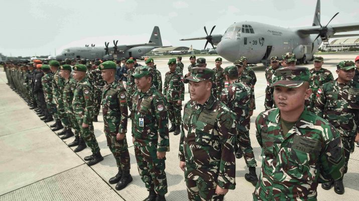 Kepala Staf TNI Angkatan Udara (KSAU) Marsekal TNI Mohamad Tonny Harjono (kiri) menyalami Prajurit TNI yang tergabung dalam Satgas Garuda Merah Putih II usai melaksanakan misi kemanusiaan ke Gaza di Lanud Halim Perdanakusuma, Jakarta Timur, Sabtu (13/9/2025). Satgas Garuda Merah Putih II berhasil menyalurkan Donasi ke Gaza sebanyak 91,4 ton menggunakan tiga pesawat Super Hercules yang terdiri dari bahan makanan, obat-obatan, dan logistik lewat skema airdrop Serempak 15 negara yang tergabung dalam solidarity operation. ANTARA FOTO/Fakhri Hermansyah/Ppj