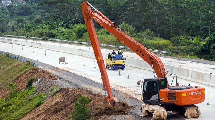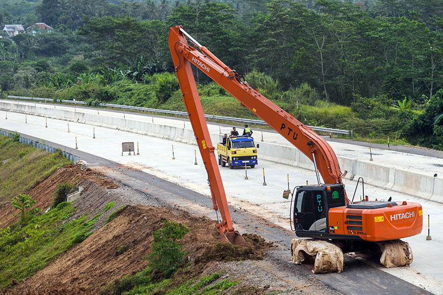 Pekerja menaiki truk melintas di kawasan pembangunan Tol Serang-Panimbang seksi II, Cikulur, Lebak, Banten, Sabtu (6/9/2025). Pembangunan Jalan Tol SerangâPanimbang sepanjang 83,67 kilometer yang menjadi Proyek Strategis Nasional (PSN) ditargetkan dapat beroperasi penuh pada 2027 mendatang dan diharapkan dapat mendorong pertumbuhan ekonomi di Provinsi Banten. ANTARA/Muhammad Bagus Khoirunas/gus