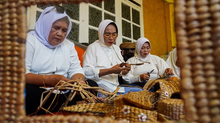 Sejumlah perajin menganyam tanaman eceng gondok di Pusat Komunitas Pemberdayaan Kasih Bunda, Makassar, Sulawesi Selatan, Senin (10/3/2025). UMKM dari Komunitas Pemberdayaan Kasih Bunda memproduksi berbagai jenis anyaman berbahan baku dari tanaman eceng gondok seperti tas, miniatur kapal phinisi, hiasan baju bodo, topi, dan tudung saji yang dipasarkan ke hotel-hotel serta pembelian oleh turis asing dengan harga mulai Rp80 ribu Tamat Rp2 juta, sekaligus menjadi bagian dari upaya Kepada meningkatkan kesadaran lingkungan dan pendidikan tentang pentingnya menjaga ekosistem perairan yang sehat. ANTARA/Hasrul Said/gus