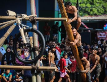 Pesepak bola Persebaya Surabaya, Risto Mitrevski (kanan), berselebrasi Serempak Dejan Tumbas (kiri) usai mencetak gol ke gawang Bali United pada laga BRI Super League di Stadion Gelora Bung Tomo, Surabaya, Jawa Timur, Sabtu (23/8/2025). Persebaya Surabaya menang atas Bali United dengan skor 5-2.