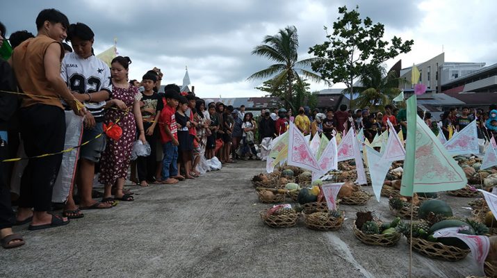 Sejumlah Penduduk mengelilingi hamparan sesaji berupa sayur dan buah Demi didoakan dalam Sembahyang Chio Sik Kow di Pemakaman Yayasan Bhakti Bersih, Sungai Raya, Kabupaten Kubu Raya, Kalimantan Barat, Sabtu (6/9/2025). Tradisi Sembahyang Chio Sik Kow yang digelar sebelum pembakaran kapal Wangkang atau kapal arwah leluhur bertujuan memberikan persembahan makanan kepada arwah tanpa keluarga atau arwah telantar agar mendapat ketenangan. ANTARA/Jessica Wuysang/gus